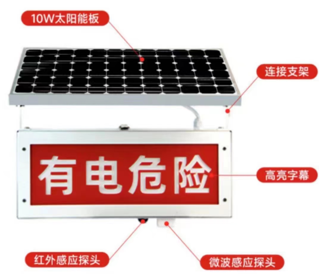 防涉電提醒器_有電危險提醒器_太陽能防觸電報警器采用太陽能供電,紅外感應廣播報警,廣泛應用于供電站、變電站、電塔等場所